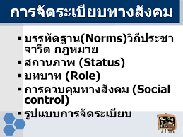 การจัดระเบียบทางสังคม หมายถึง กระบวนการทางสังคมที่จัดขึ้นเพื่อควบคุมสมาชิกให้มีความสัมพันธ์กันภายใต้แบบแผนและกฎเกณฑ์เดียวกัน เพื่อให้เกิดความ